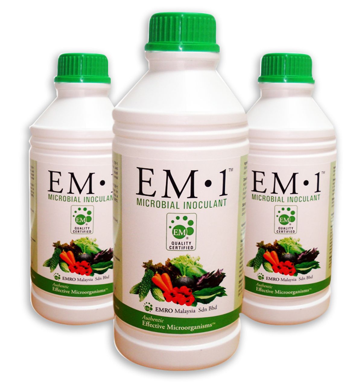 EM® is an acronym for Effective Microorganisms®. It is a brand name referring to a line of microbial-based products using a technology developed by Japanese scientist Dr. Teruo Higa. EM•1® is a liquid bacterial product made of three groups of bacteria: Yeast, Photosythetic Bacteria, and Lactic Acid Bacteria. EM•1® works together with beneficial microbes in the area to which it is added, creating a synergy among microorganisms and larger forms of life including insects and worms, pets and livestock, and people.